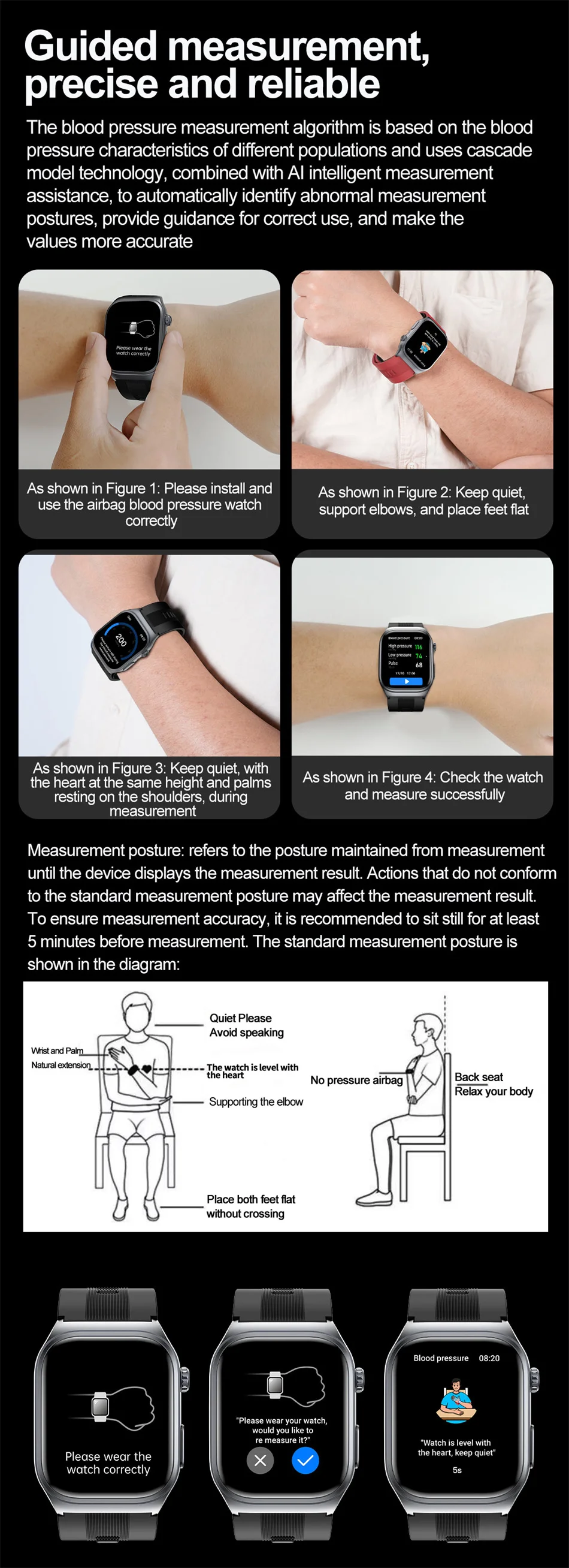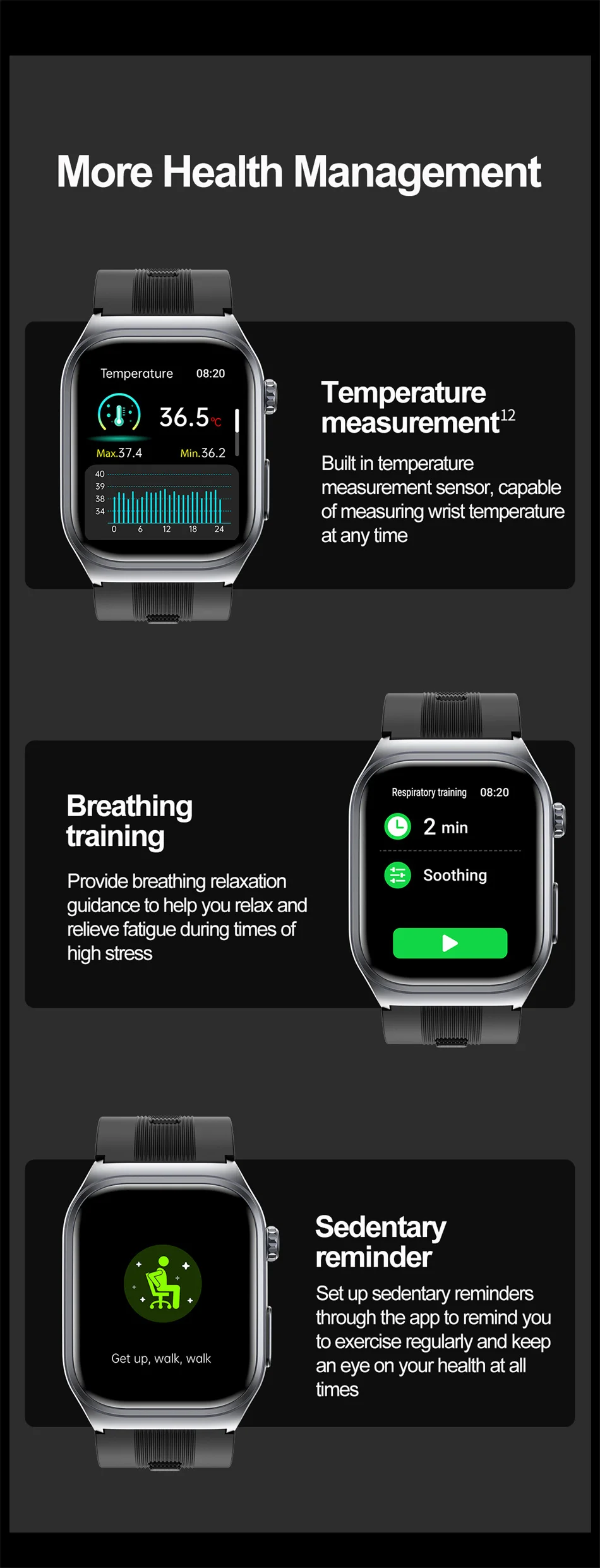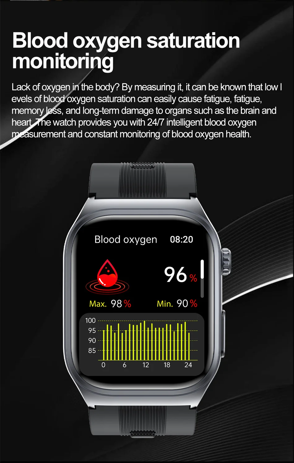 2025 New Health Monitor Smart Watch Blood Pressure Lipid Uric Acid ECG NFC Body Temperature Bluetooth Call Health Smartwatch