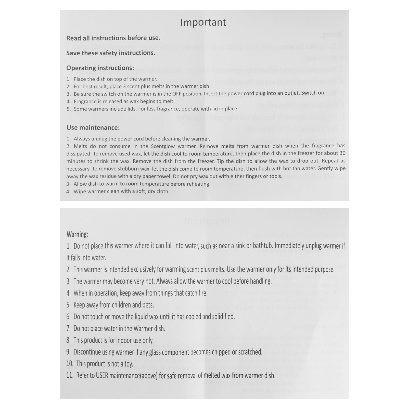 This wax melter is easy to operate. Plug the power cord and turn on the switch, the fragrance spreads all around the room soon without noise and smoke, creating a pleasant and relaxing atmosphere.