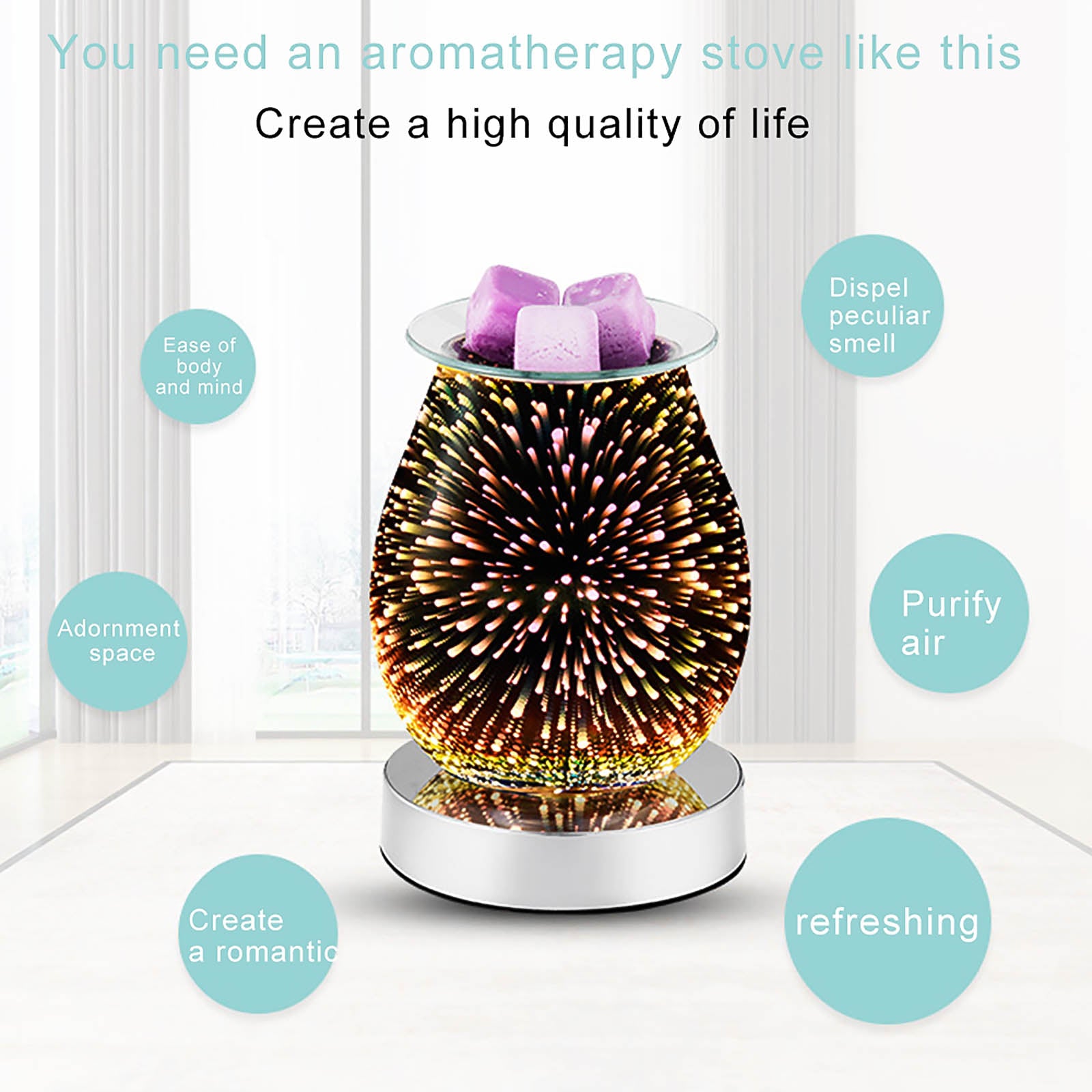 3D Fireworks Effect Touch Aromatherapy Machine Electric Wax Melter Smokeless Aroma Lamp Essential Oil Burner Aroma Accessories