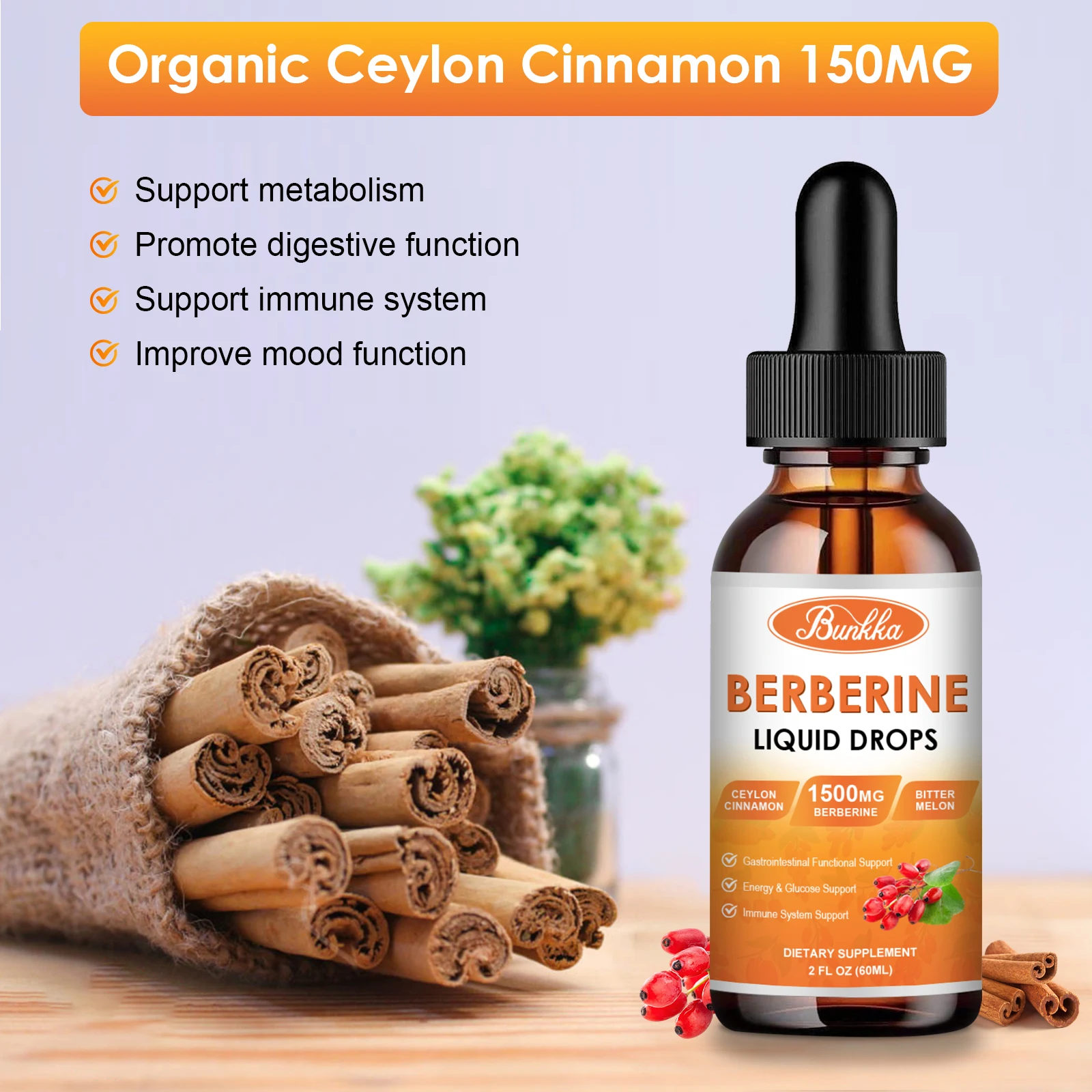 60ML Berberine Drop Contain Turmeric,Ceylon Cinnamon, Bitter Gourd, Piperine Digestive System, Immune Health Support-Vegetarian