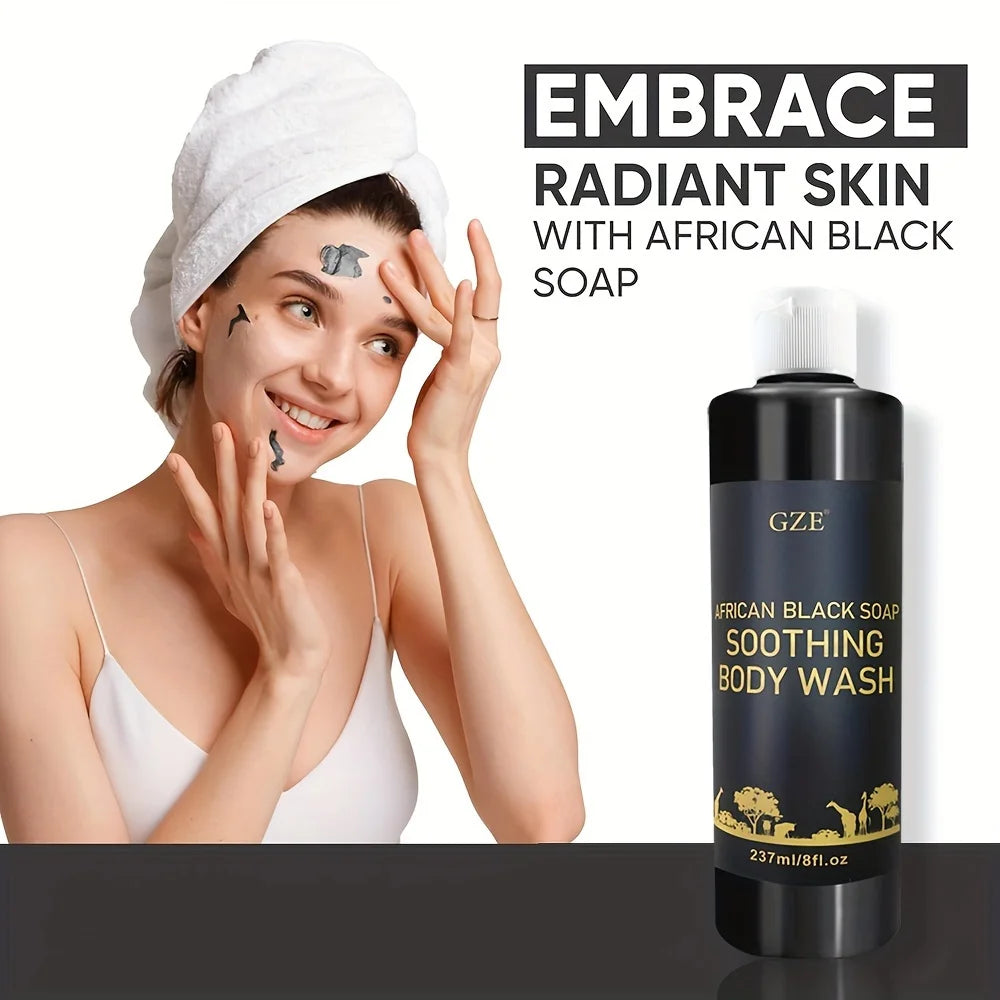 African Black Soap Body Wash - Natural Cleansing Formula with Shea Butter and Coconut Oil for Hydrated Skin - Moisturizing
