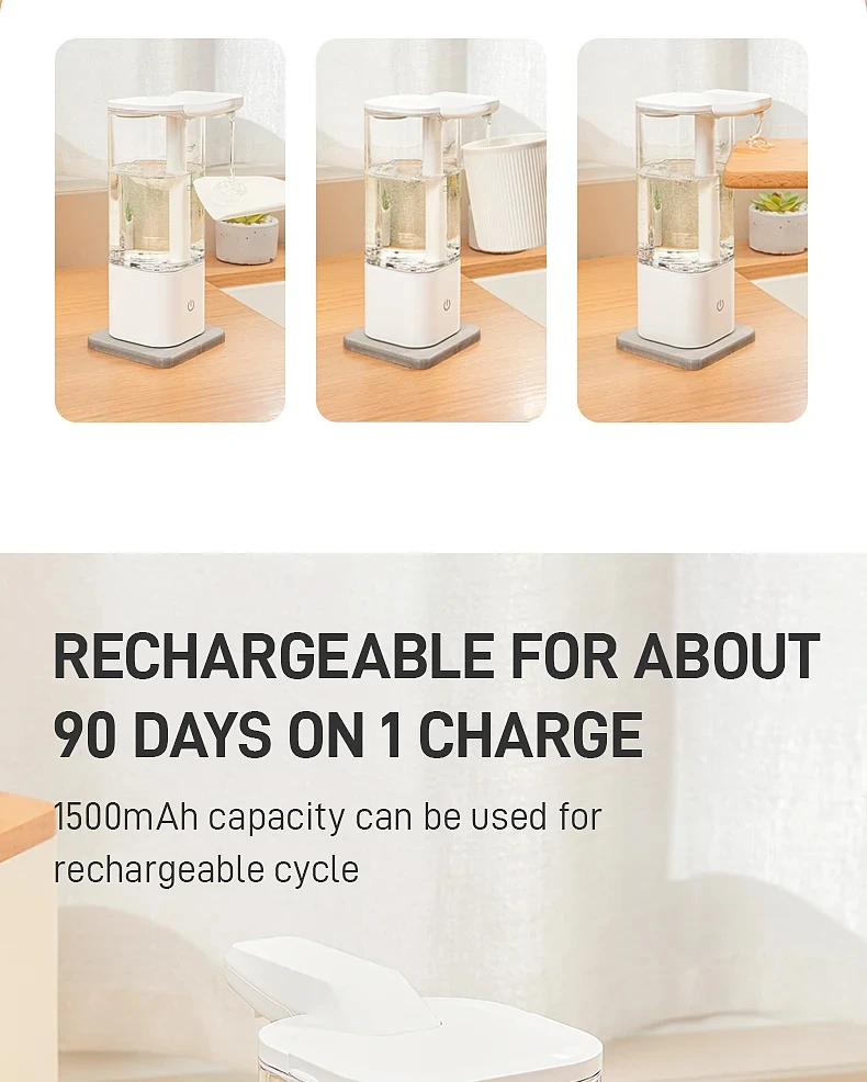 【Rechargeable Soap Dispenser】With 1500mAh built-in battery, a full charge could last for over 3 months. Rechargeable type Included a type C cable in package, battery type do not include batteries. High-quality lithium batteries can prolong service life.