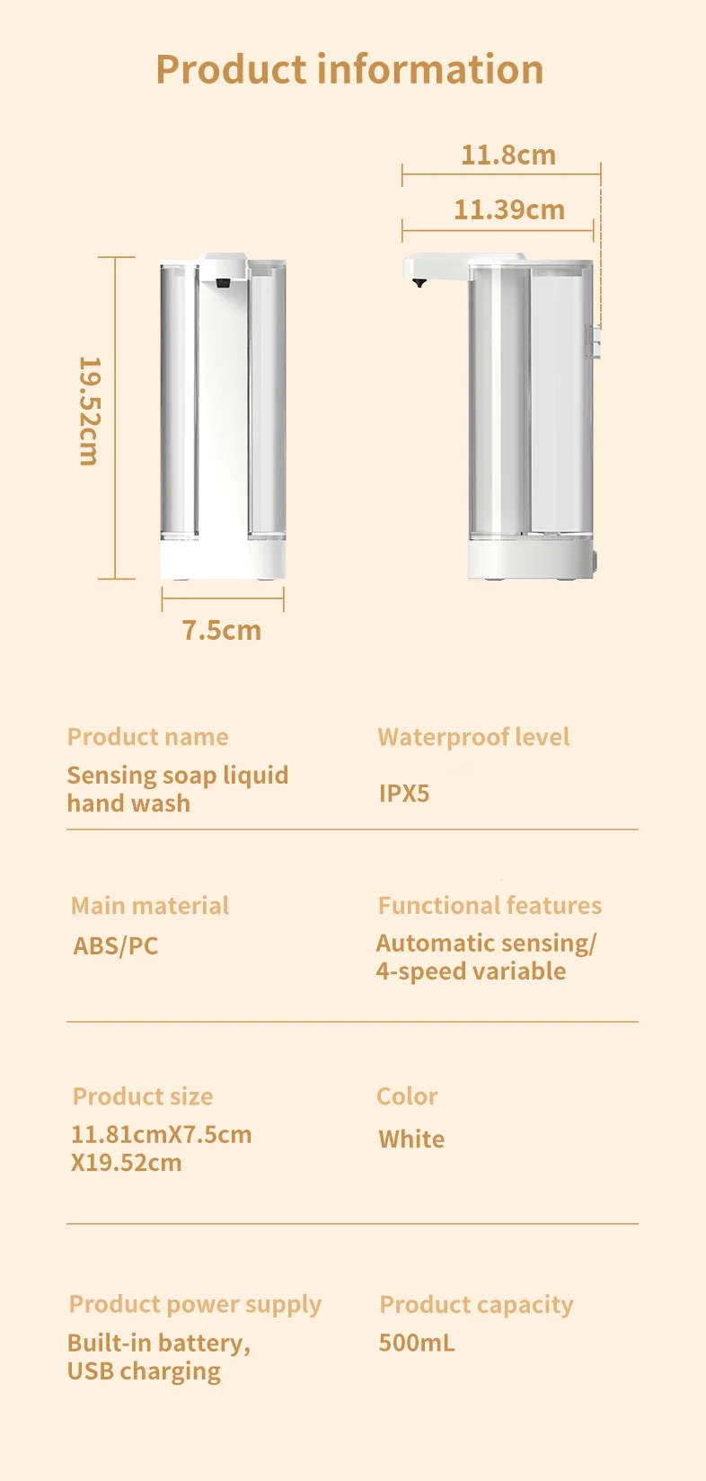 Product name: Intelligent infrared induction soap dispenser