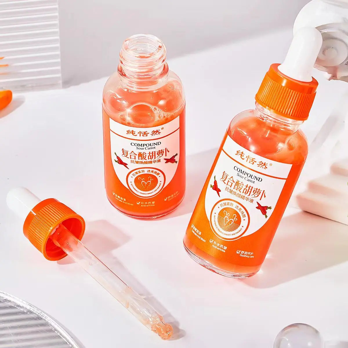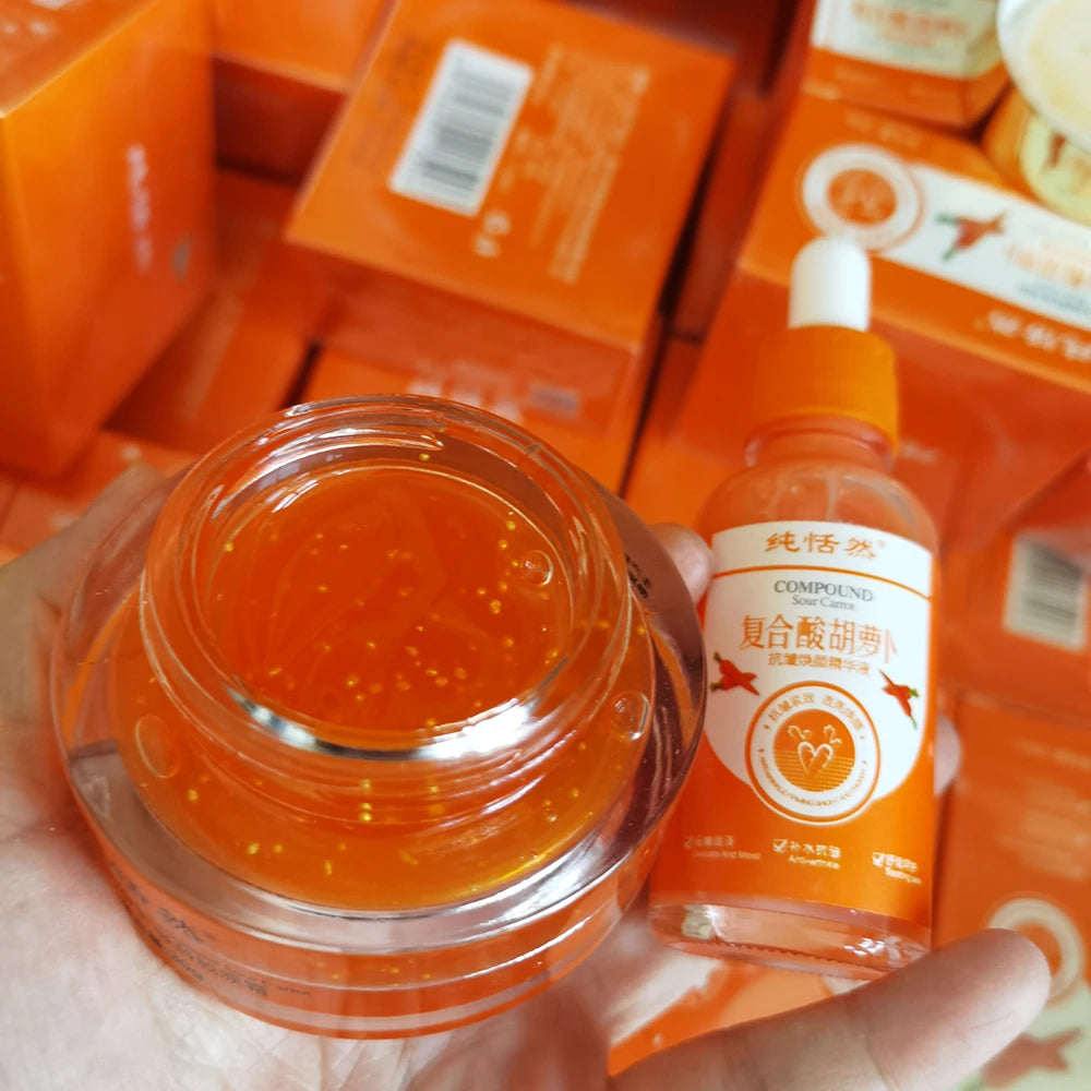 Carrot Facial Skin Care Set Carrot Serum Moisturizing Remove Dryness Fine Lines Whitening Brighten Face Anti-Aging Essence