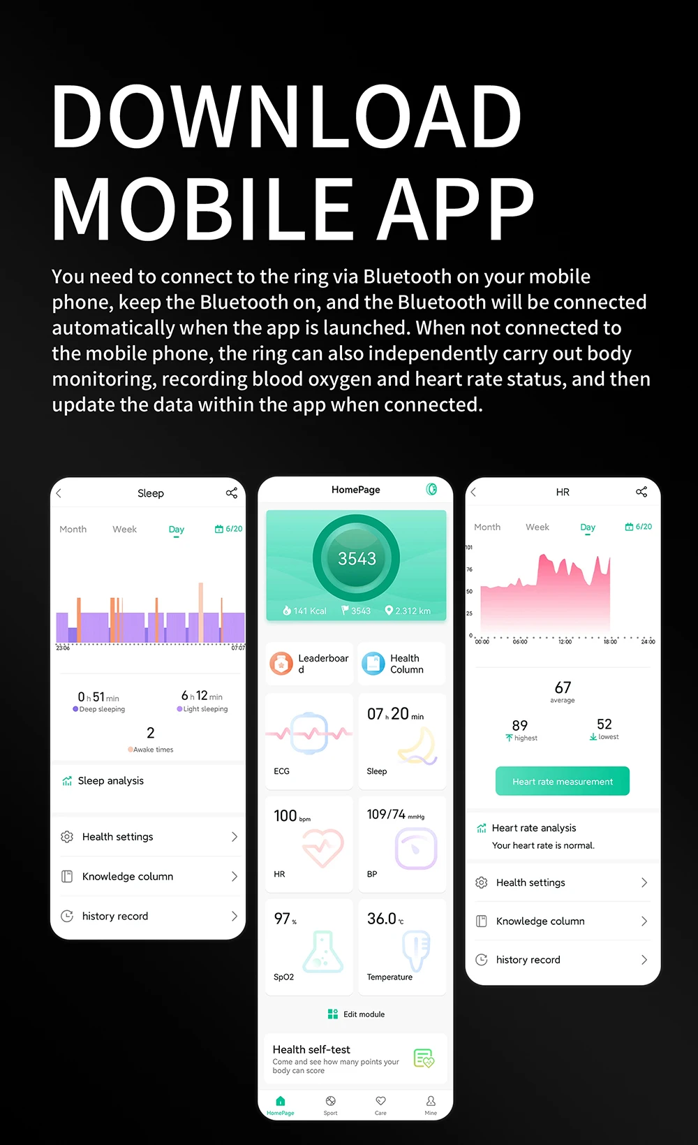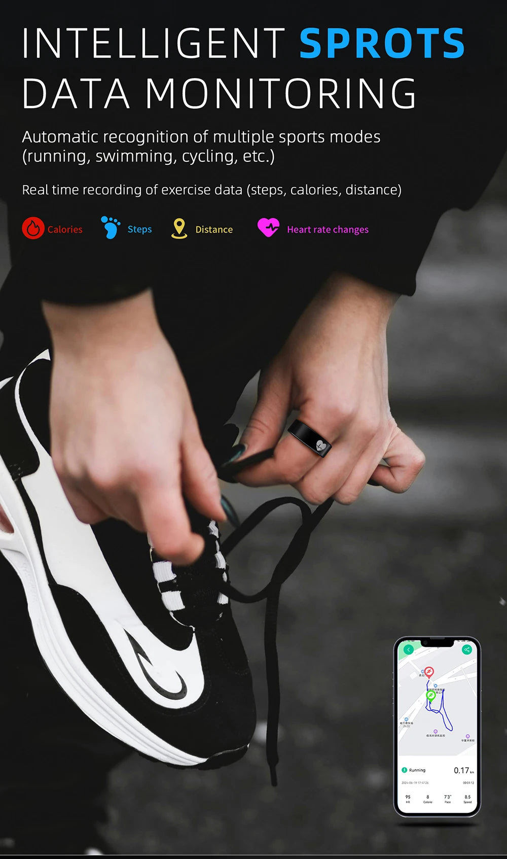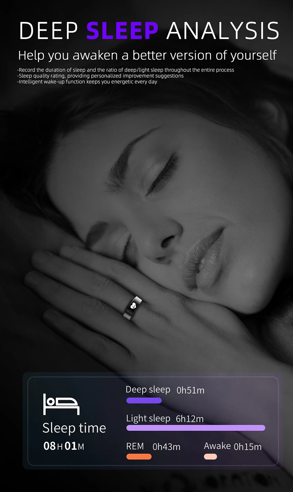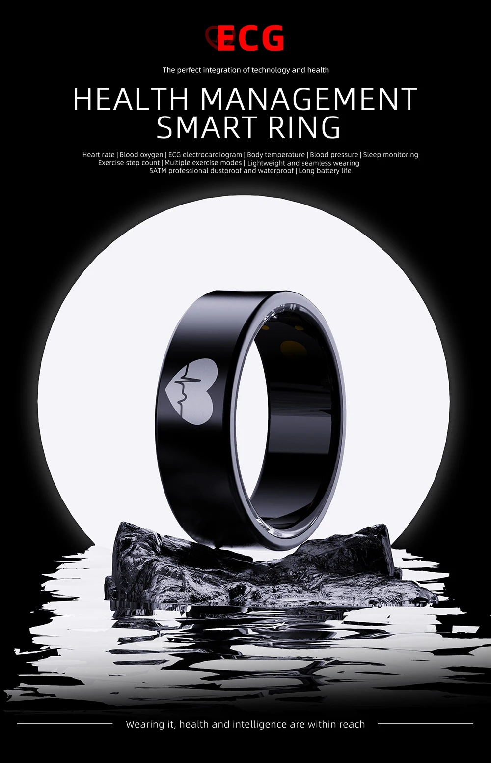 ECG Health Smart Ring Accurate Heart Rate Blood Oxygen Blood Pressure Detection Sleep Monitoring Fitness Rings IP68 Waterproof