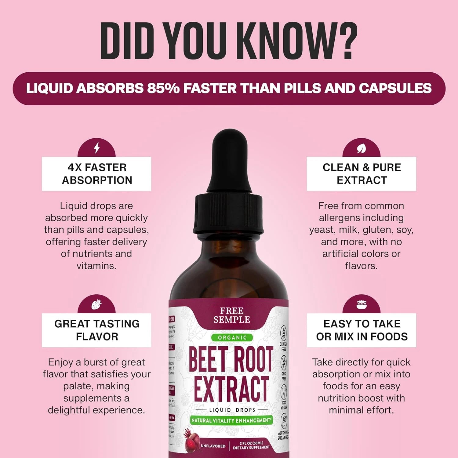 Free Sample Vegan Beet Root Liquid Supplement Liquid Beets Extra Fast Absorption with Beet Root Organic Extract