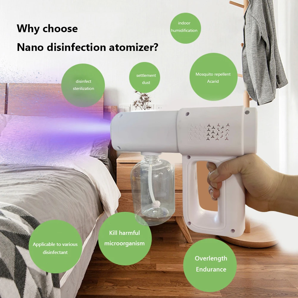 Wireless Atomization Sanitizer Machine USB Charging Handheld Disinfection Sprayer Blue Light Portable Supplies for Home Office