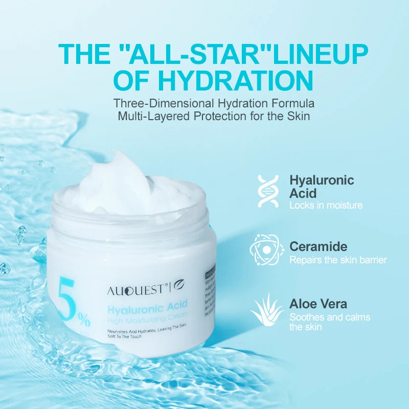 Recharge and Lock in Moisture: Hyaluronic Acid Intensive Cream is designed to deliver moisture deep into your skin. Locking the moisture into your skin, the cream provides long-lasting nourishment and hydration.