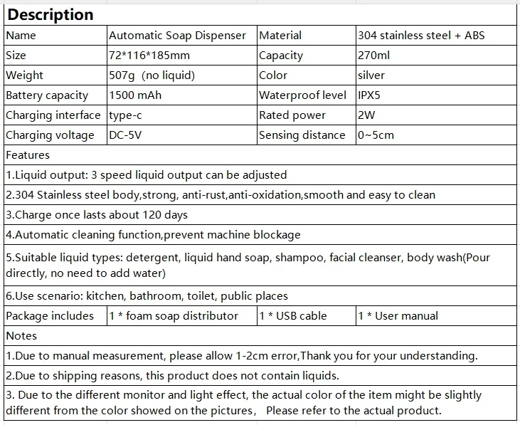 Liquid Soap Dispenser Type: Automatic Soap Dispenser