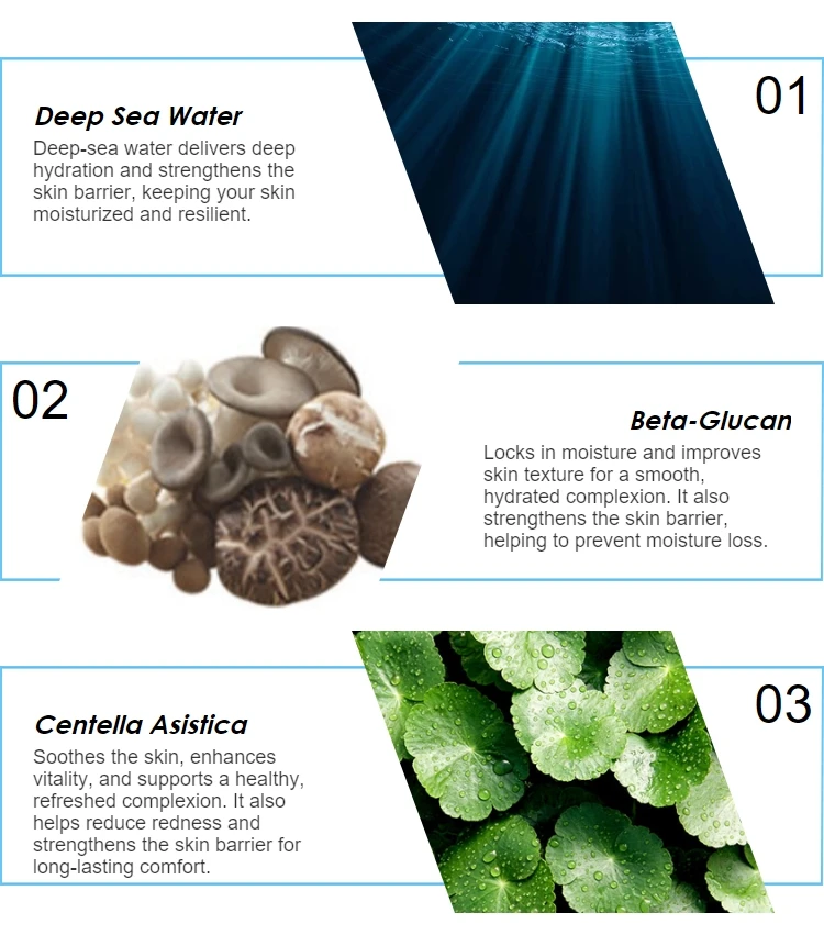 This ampoule soothes acne-prone skin, reduces inflammation, and helps heal scars. With deep-sea water and beta-glucan, it hydrates, prevents moisture loss, and promotes a smoother, clearer complexion. The fast-absorbing formula provides intense moisture and rebalances the skin for a refreshed feel.