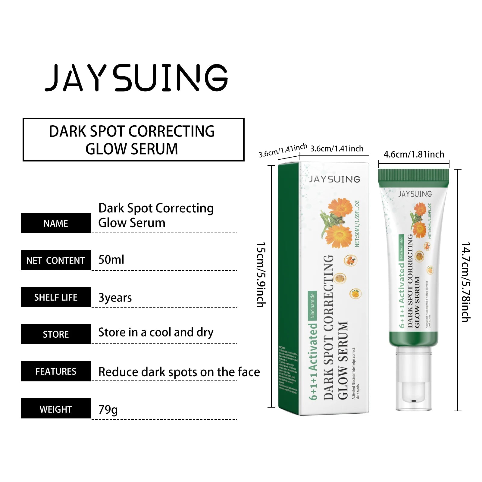Jaysuing Skin Brightening Essence Eliminate Dullness Even Tone Reduce Fine Lines Moisturize Increase Skin Elasticity Nicotinamide Essence 50ml