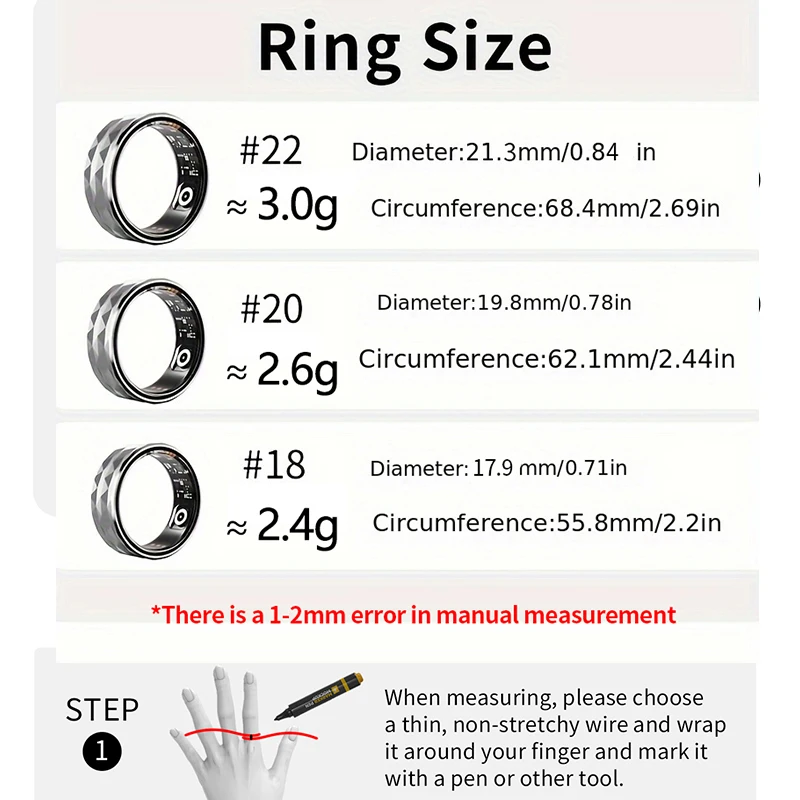 YERSIDA R12M Smart Ring Health Sleep Heart rate Monitoring IP68 5ATM Waterproof Step Distance Calorie Counting Multi Sport Modes