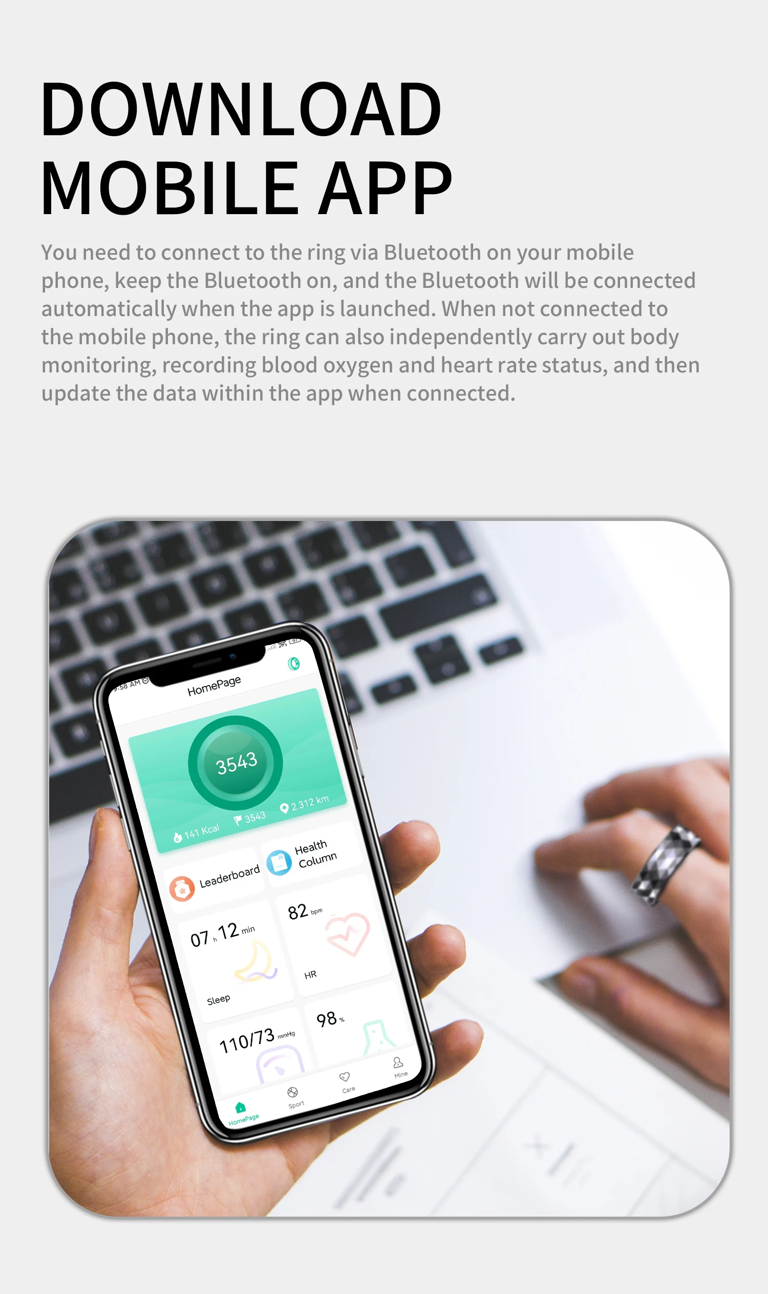 Smart Ring R12M Health Sleep Heart Rate Monitoring IP68 5ATM Waterproof Step Distance Calorie Counting Multi Sport Modes For Man