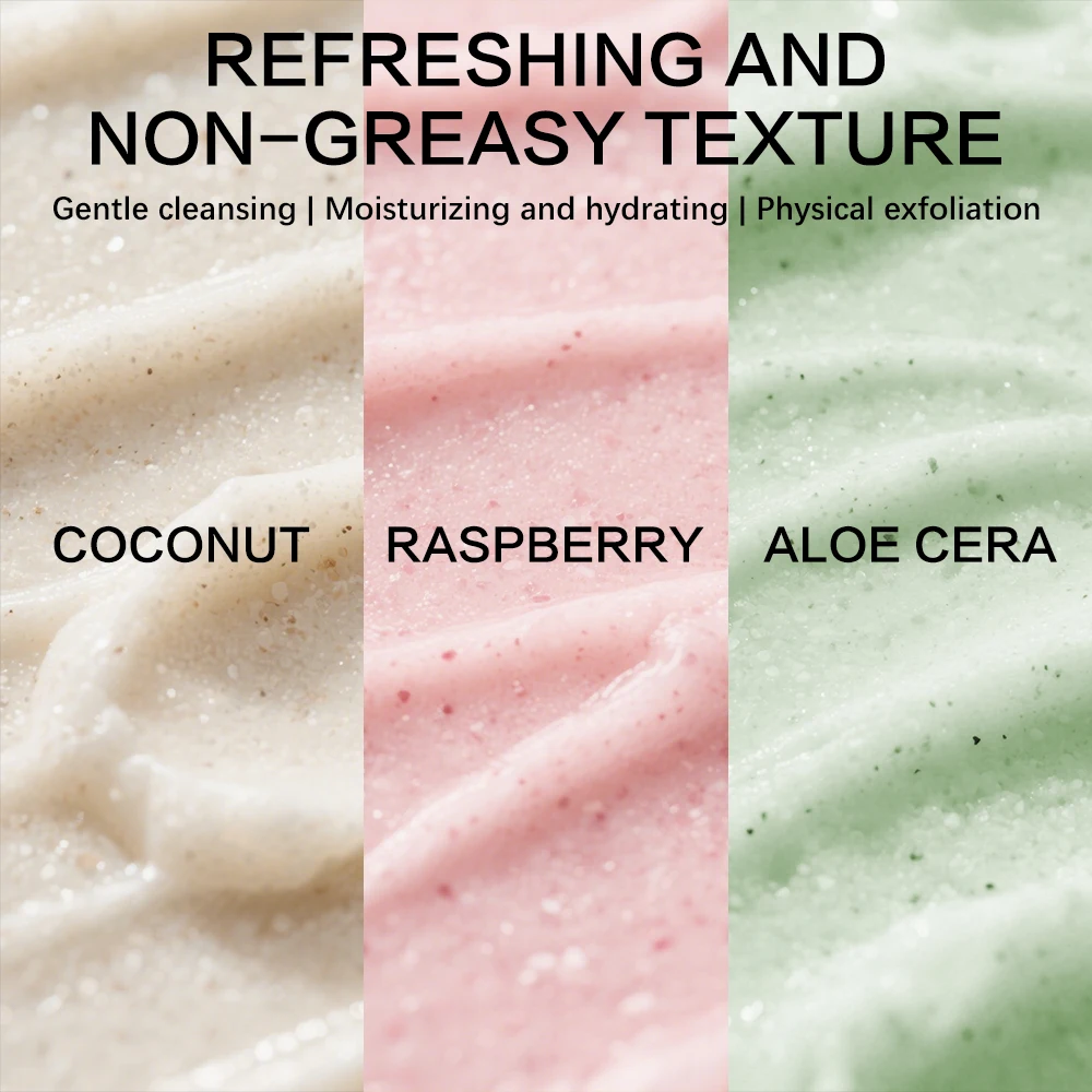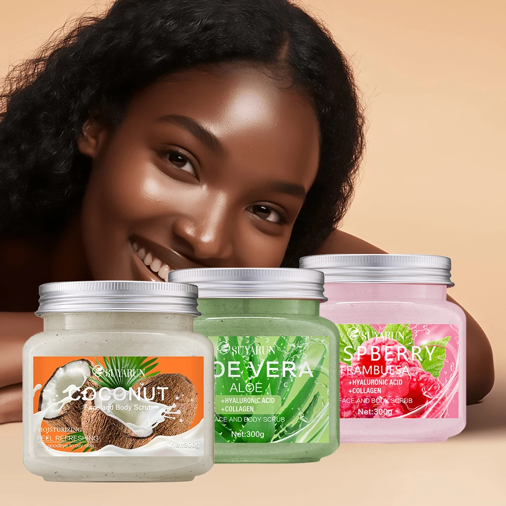SUYARUN Natural Exfoliating Body Scrub - Raspberry/Aloe/Coconut, Moisturizing Dead Skin Removal, 3 Flavor for Smooth Skin.